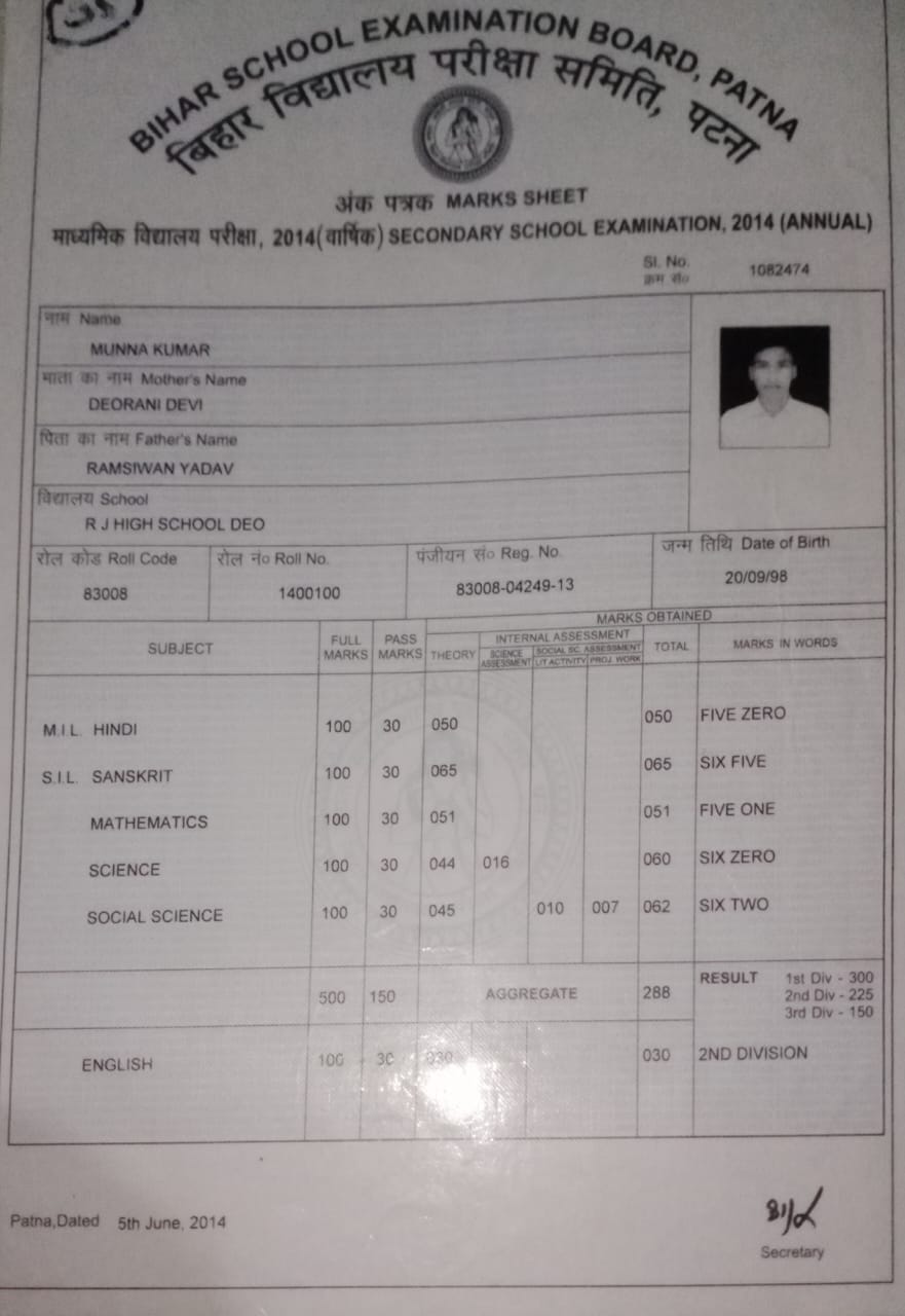 | Exam | Full Marks | Pass Marks | Marks Obtained |