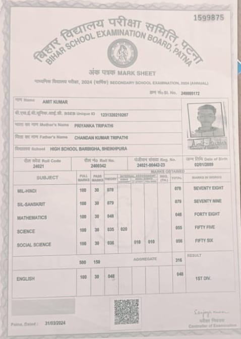 | Exam | Full Marks | Pass Marks | Marks Obtained |