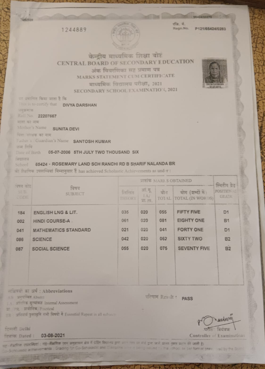 | Exam | Full Marks | Pass Marks | Marks Obtained |