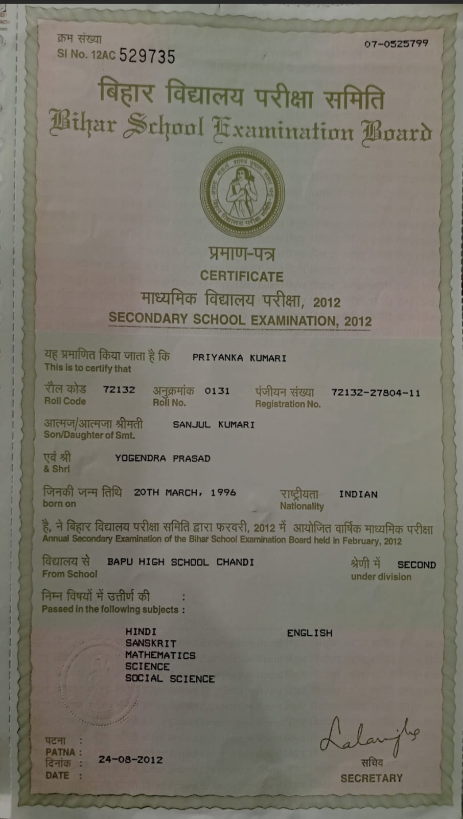 | Exam | Full Marks | Pass Marks | Marks Obtained |