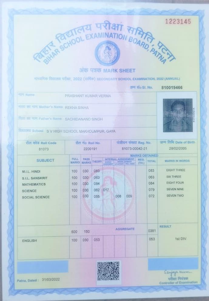| Exam | Full Marks | Pass Marks | Marks Obtained |