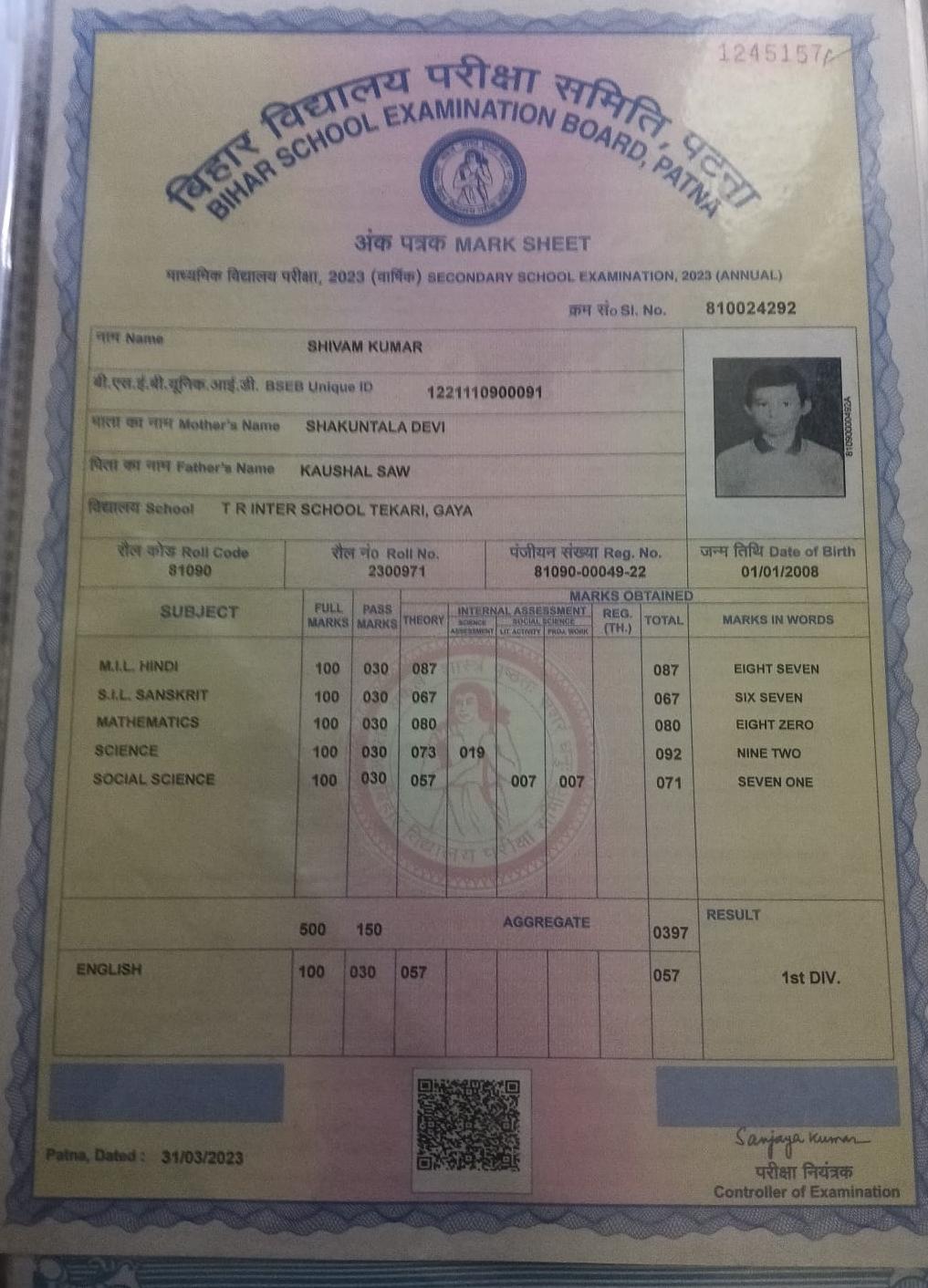 | Exam | Full Marks | Pass Marks | Marks Obtained |
