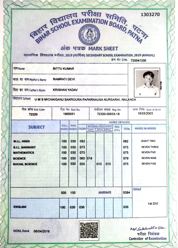 | Exam | Full Marks | Pass Marks | Marks Obtained |