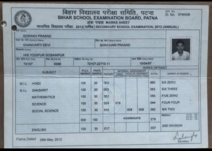 | Exam | Full Marks | Pass Marks | Marks Obtained |