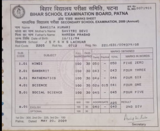 | Exam | Full Marks | Pass Marks | Marks Obtained |