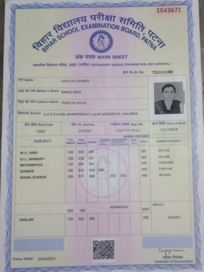 | Exam | Full Marks | Pass Marks | Marks Obtained |