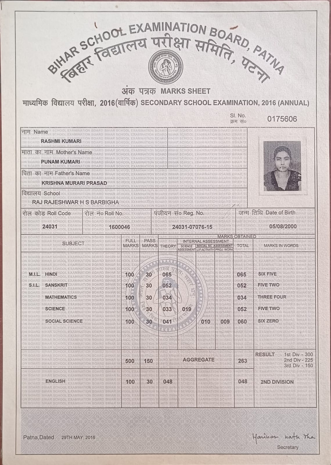 | Exam | Full Marks | Pass Marks | Marks Obtained |