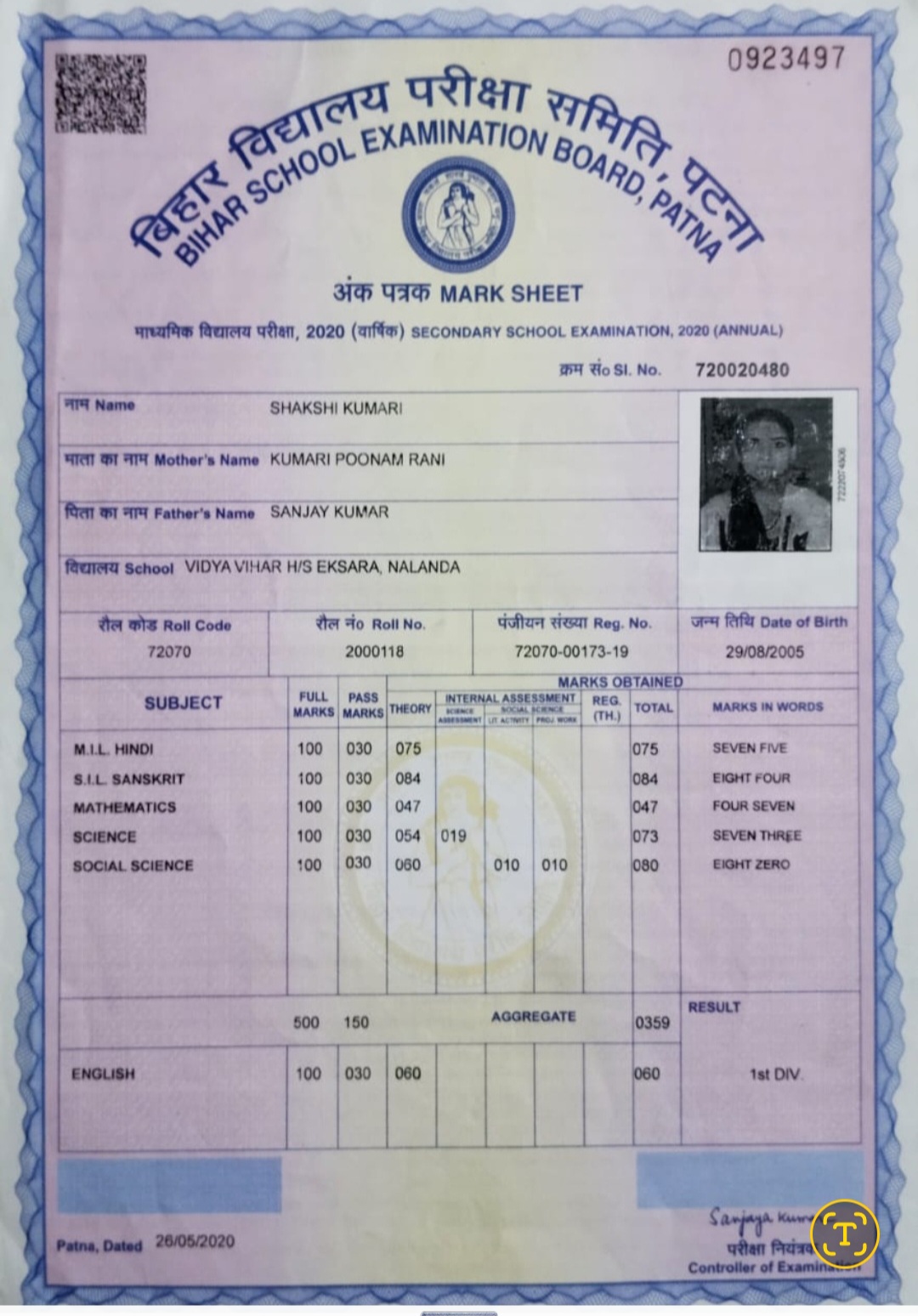 | Exam | Full Marks | Pass Marks | Marks Obtained |