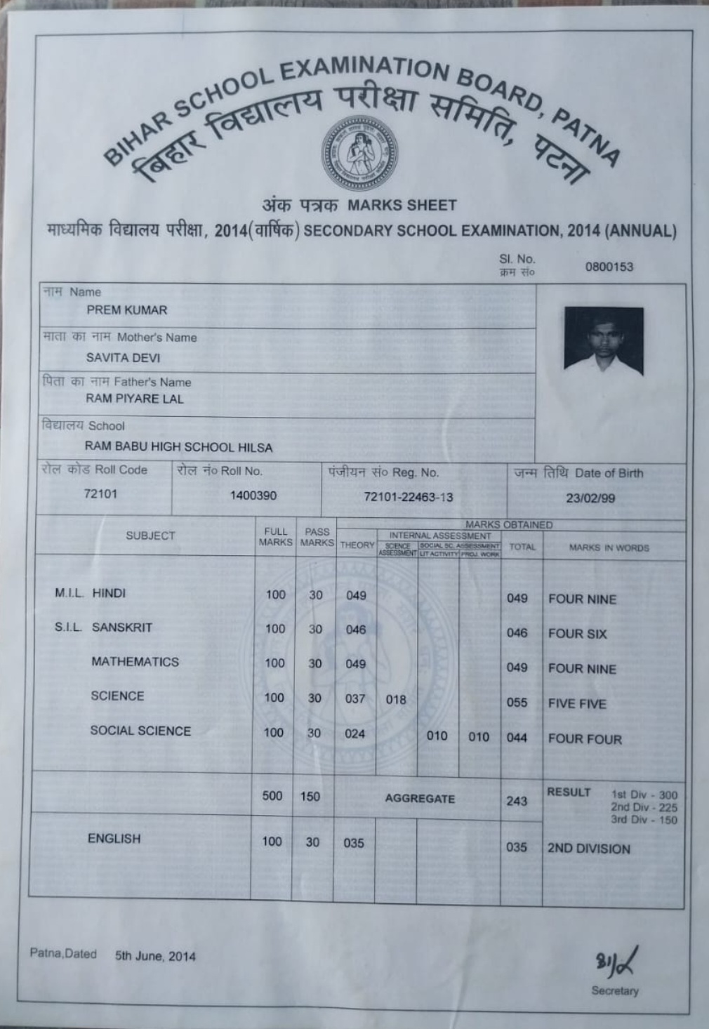 | Exam | Full Marks | Pass Marks | Marks Obtained |