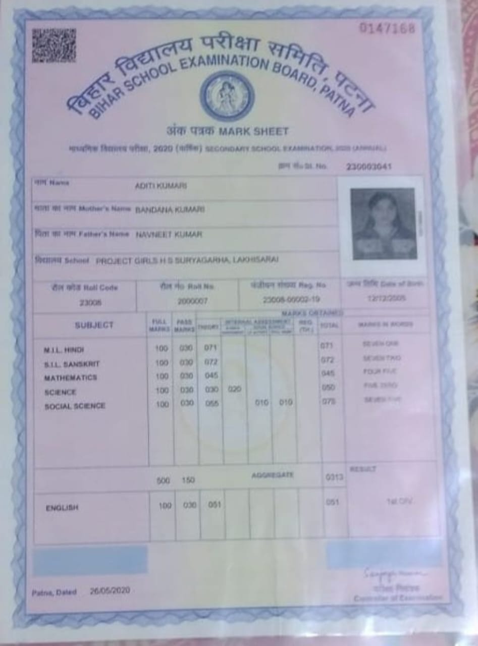 | Exam | Full Marks | Pass Marks | Marks Obtained |