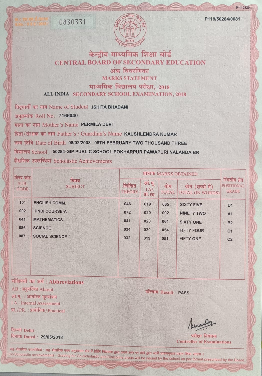 | Exam | Full Marks | Pass Marks | Marks Obtained |