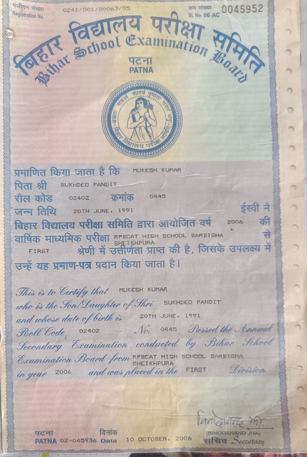 | Exam | Full Marks | Pass Marks | Marks Obtained |