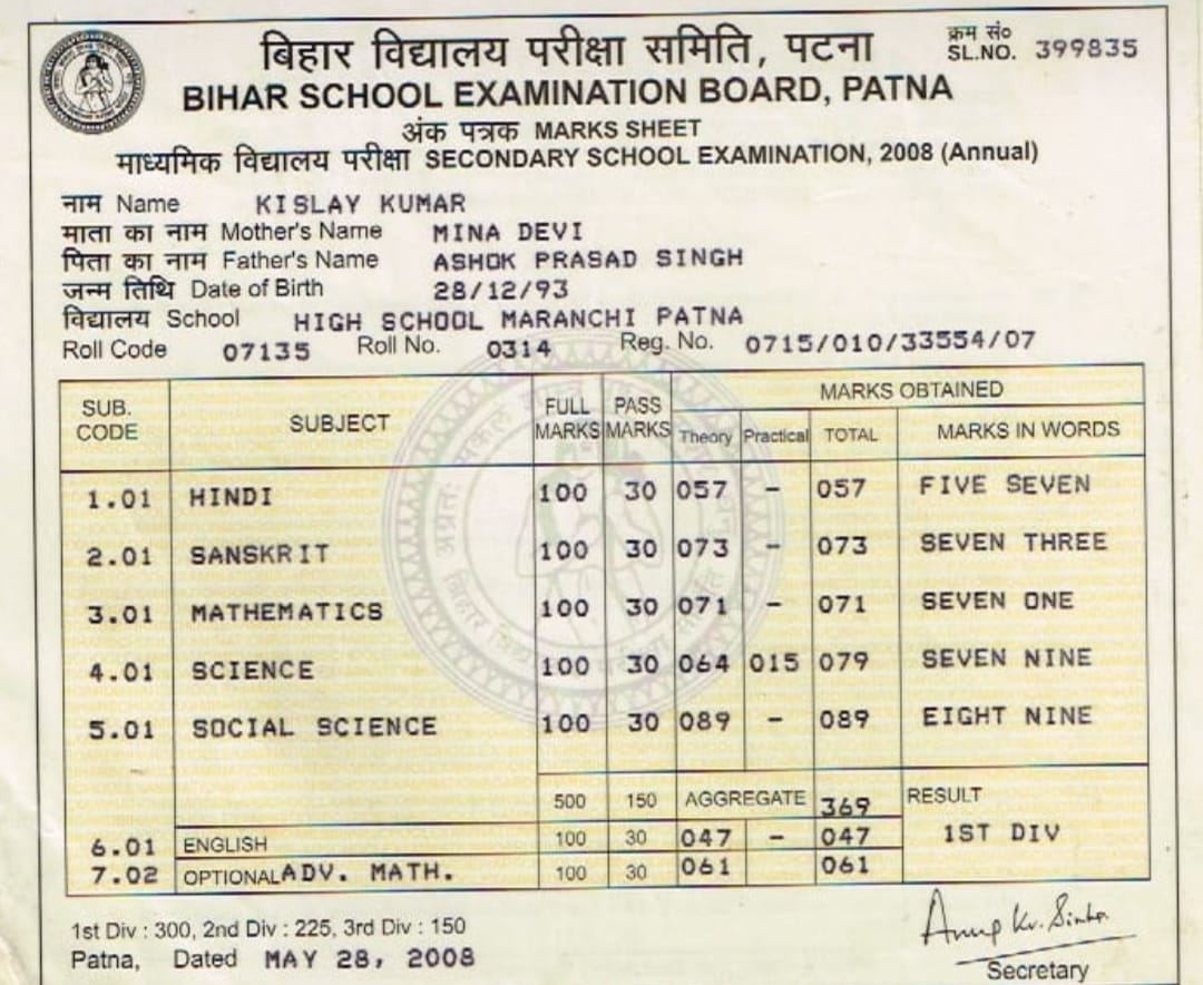 | Exam | Full Marks | Pass Marks | Marks Obtained |