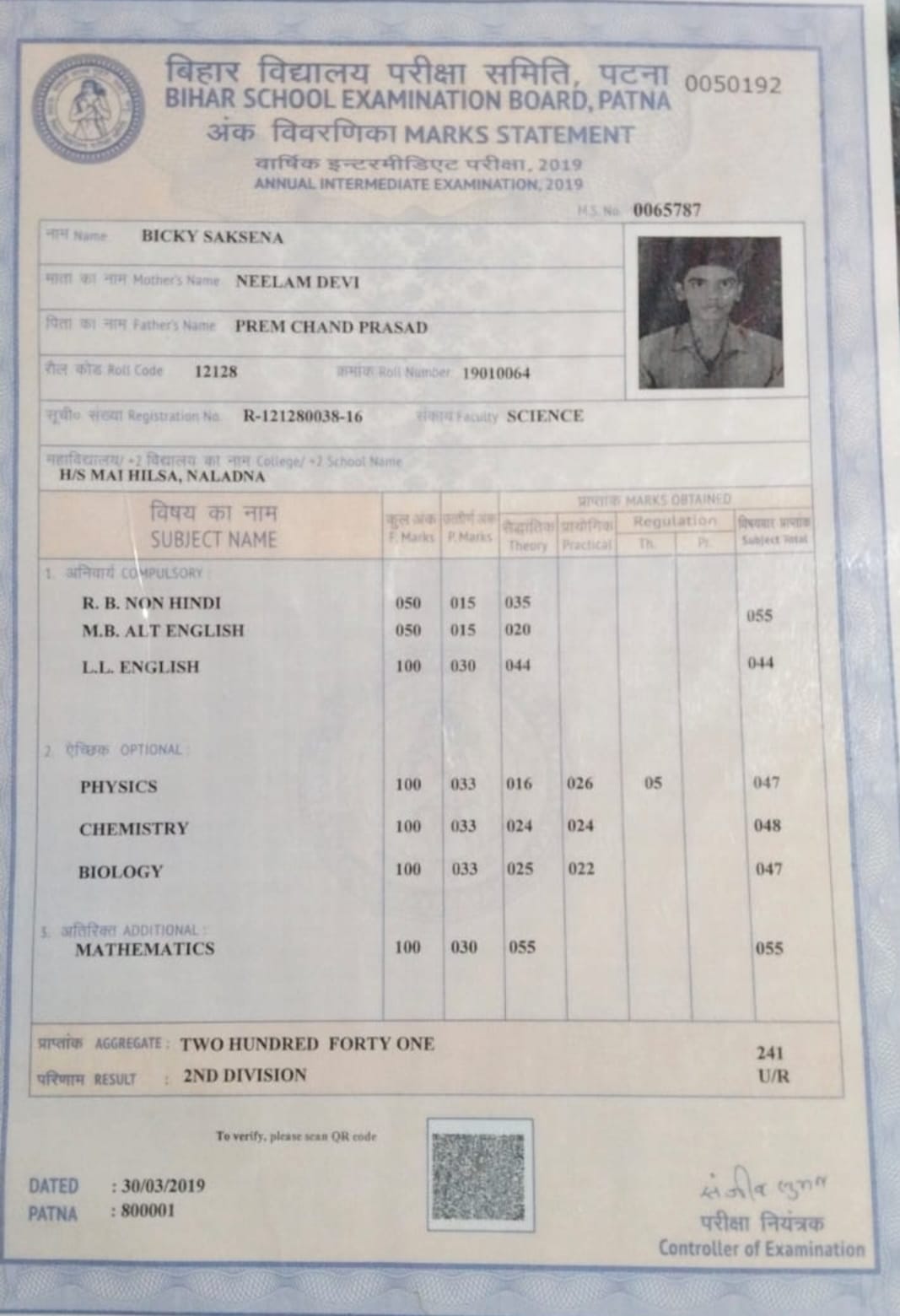 | : | S.U COLLEGE EAST OF GATE D-FOG CAMPUS HILSA NALANDA BIHAR 801302, Nalanda | |