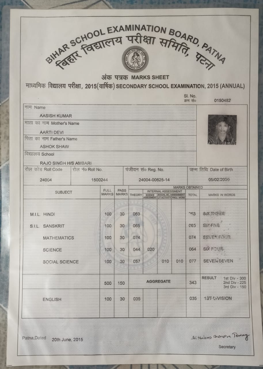 | Exam | Full Marks | Pass Marks | Marks Obtained |