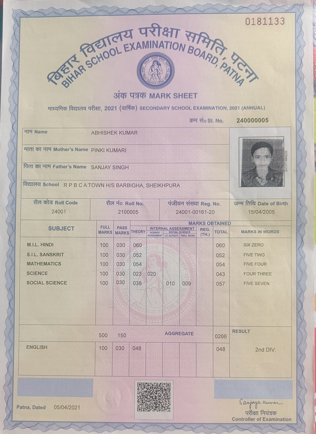 | Exam | Full Marks | Pass Marks | Marks Obtained |