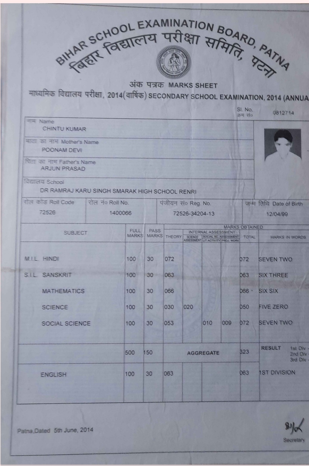 | Exam | Full Marks | Pass Marks | Marks Obtained |