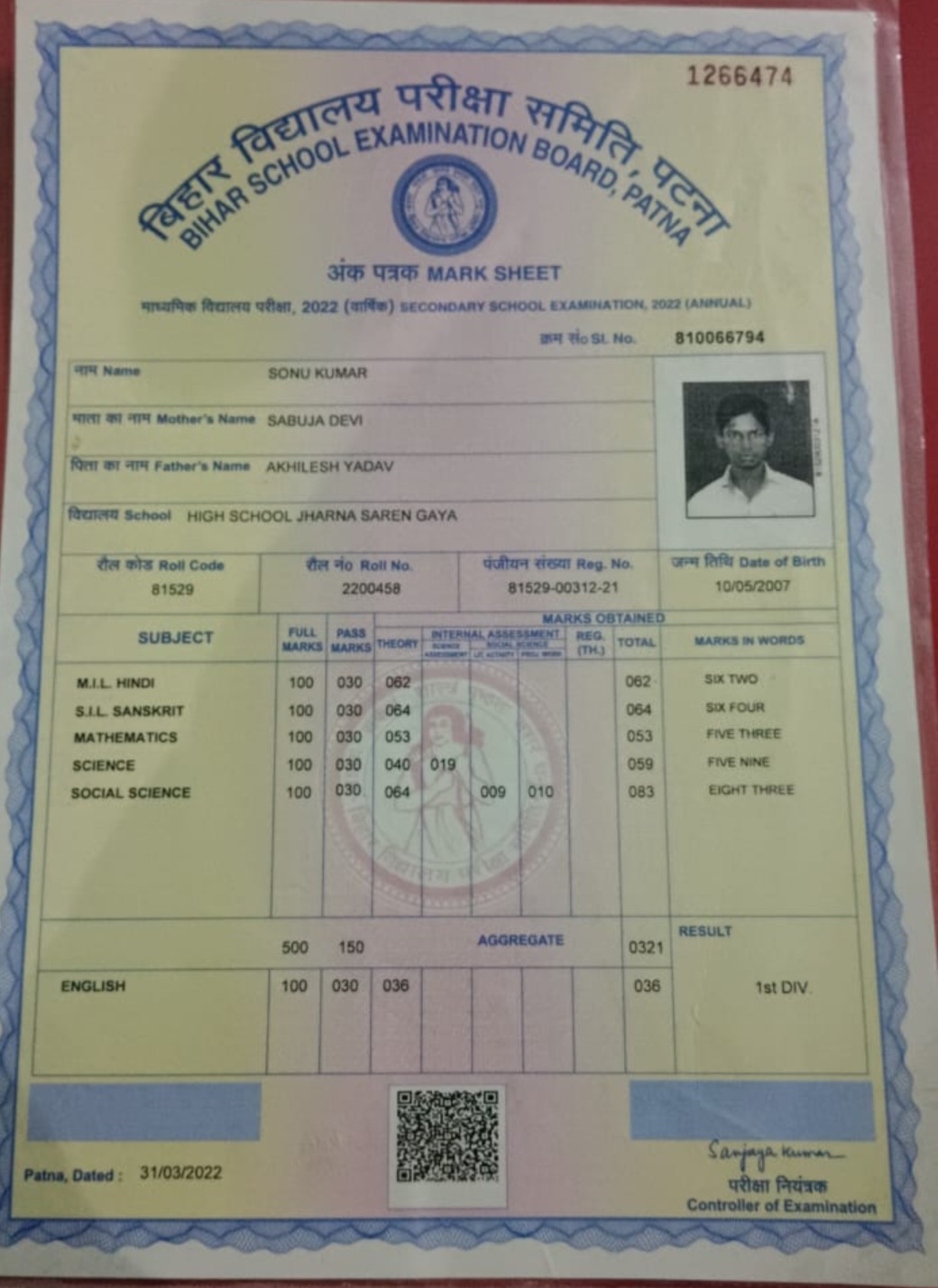 | Exam | Full Marks | Pass Marks | Marks Obtained |