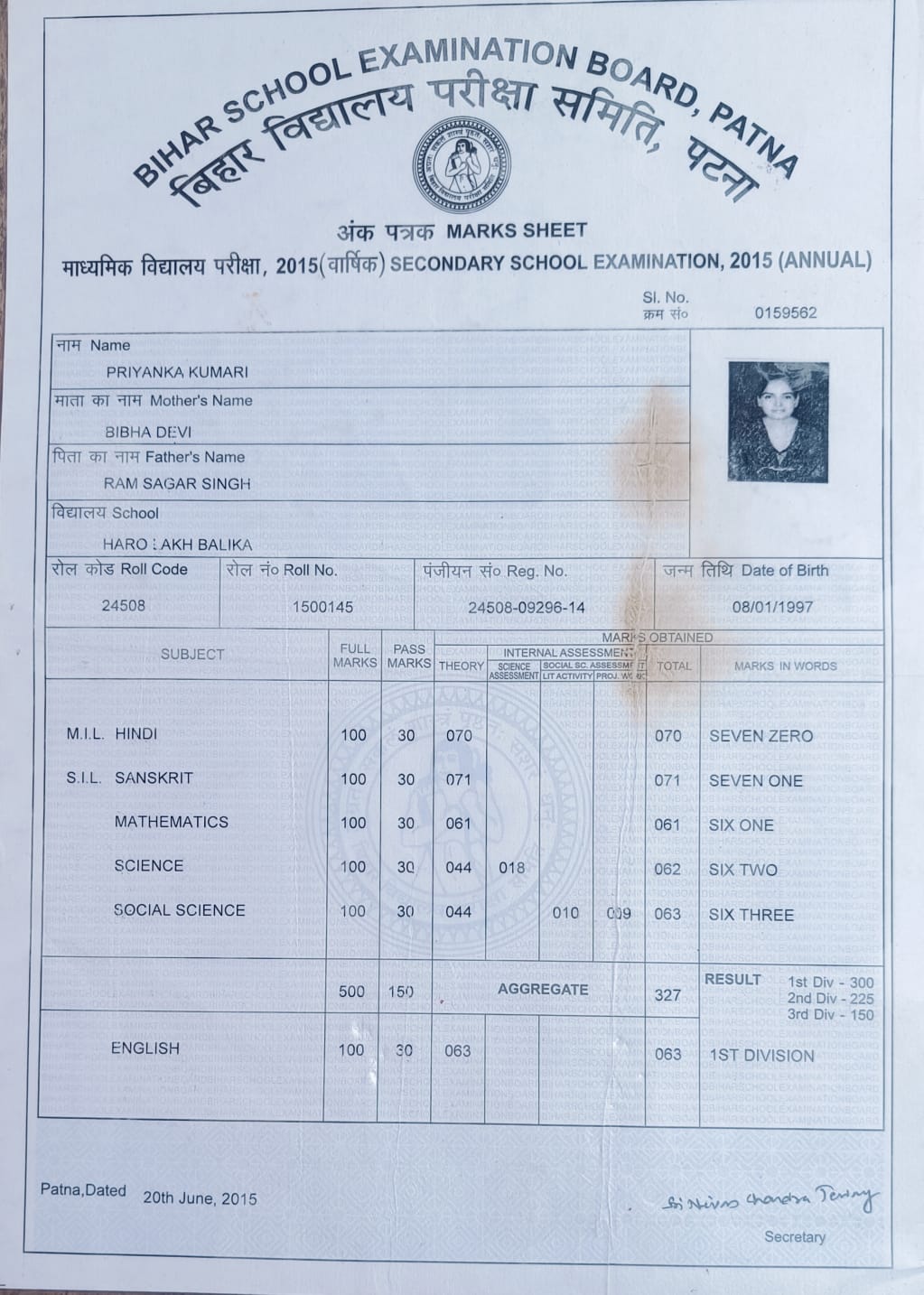 | Exam | Full Marks | Pass Marks | Marks Obtained |