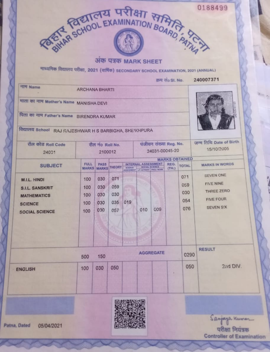 | Exam | Full Marks | Pass Marks | Marks Obtained |