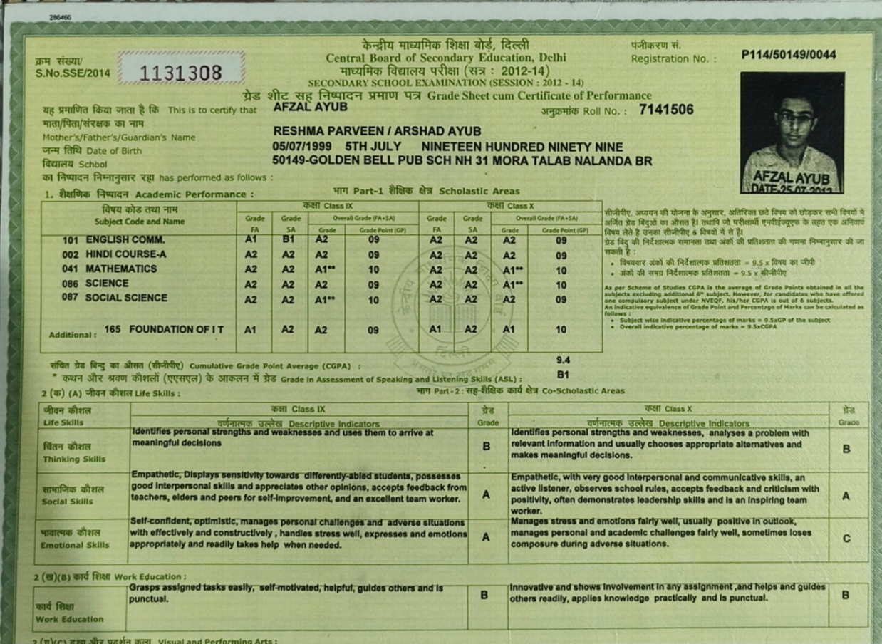 | Exam | Full Marks | Pass Marks | Marks Obtained |
