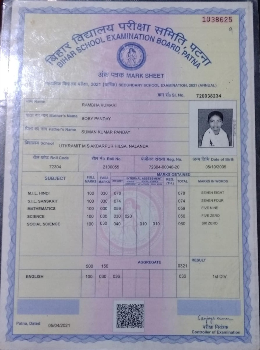 | Exam | Full Marks | Pass Marks | Marks Obtained |