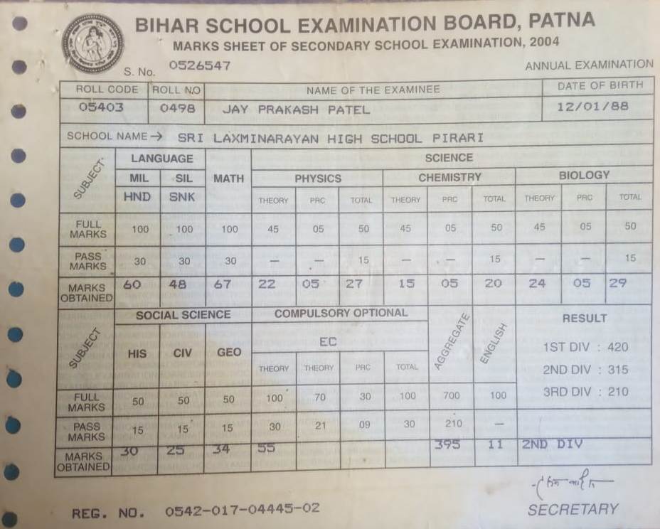 | Exam | Full Marks | Pass Marks | Marks Obtained |