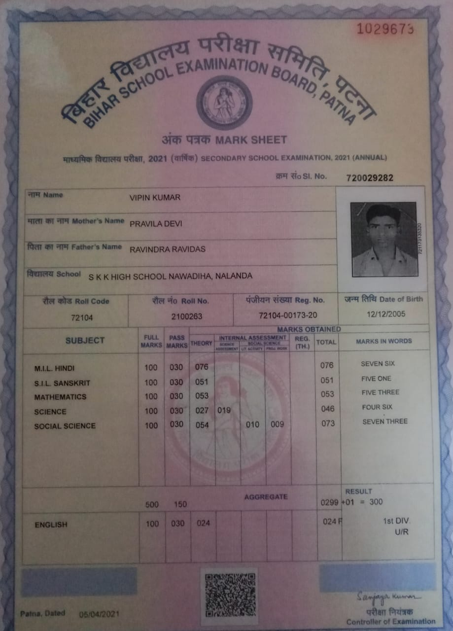 | Exam | Full Marks | Pass Marks | Marks Obtained |