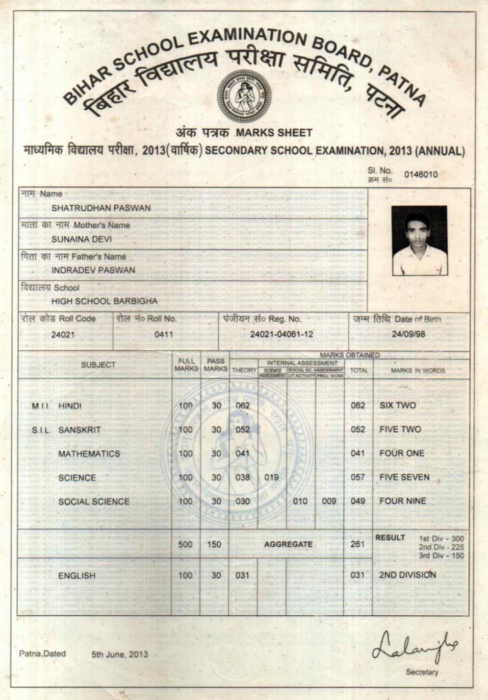 | Exam | Full Marks | Pass Marks | Marks Obtained |
