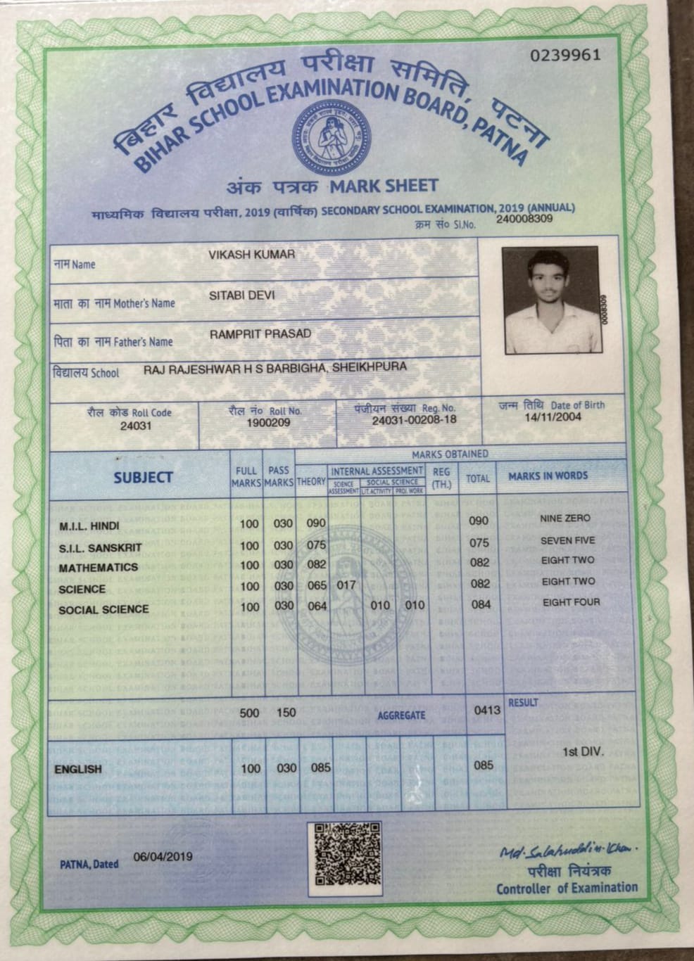 | Exam | Full Marks | Pass Marks | Marks Obtained |