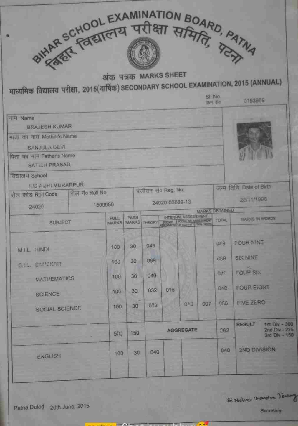 | Exam | Full Marks | Pass Marks | Marks Obtained |