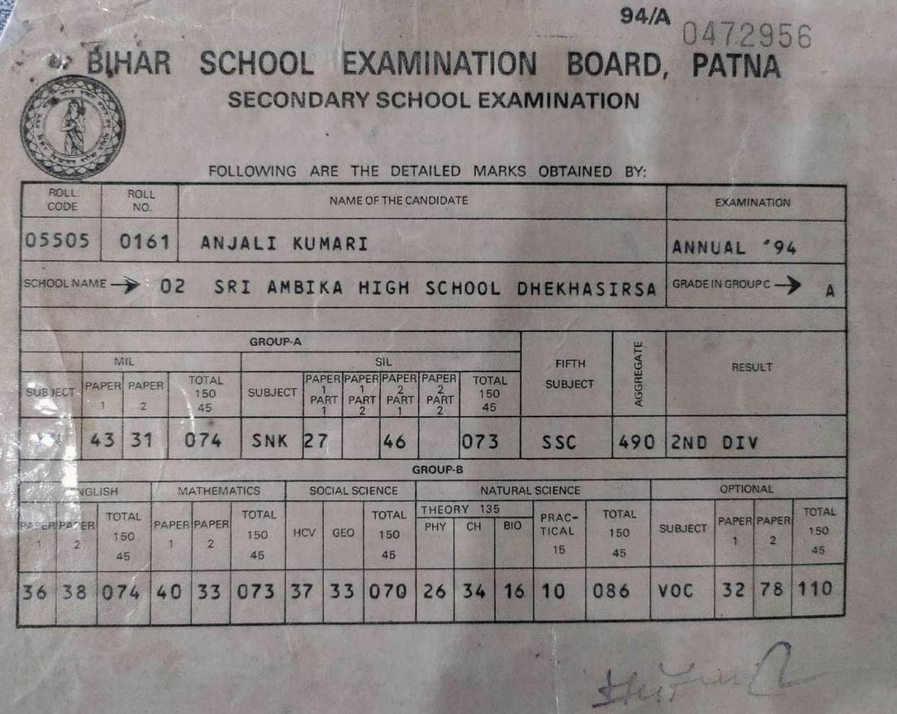 | Exam | Full Marks | Pass Marks | Marks Obtained |