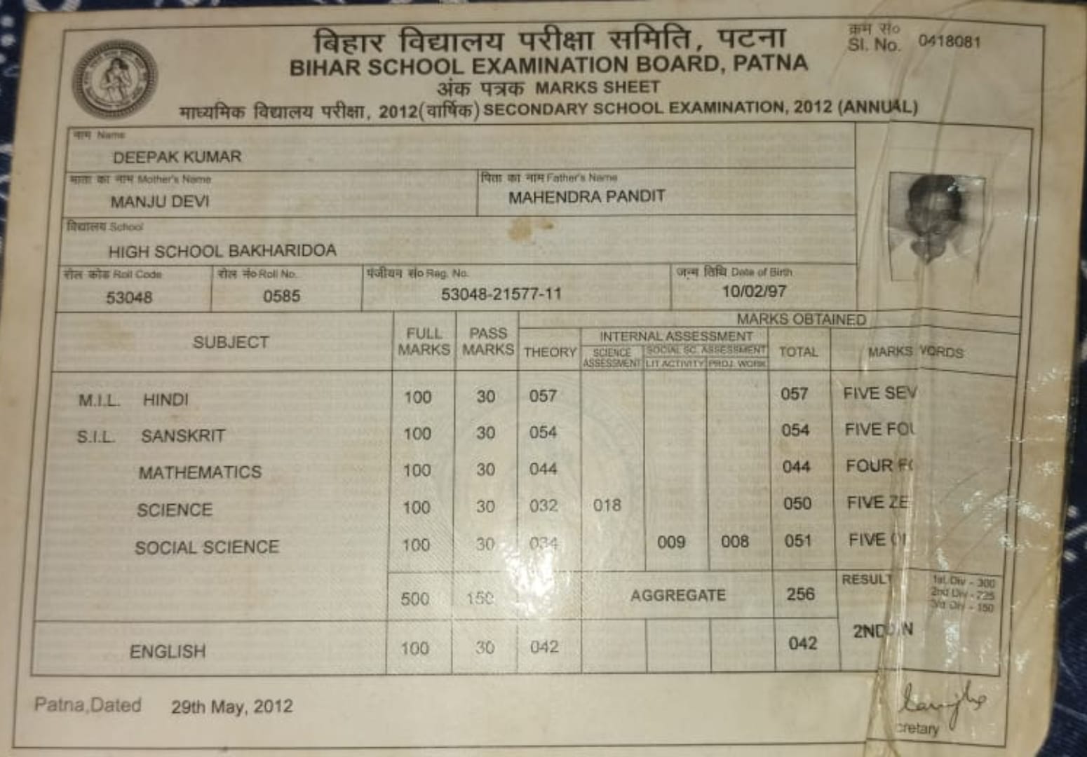 | Exam | Full Marks | Pass Marks | Marks Obtained |