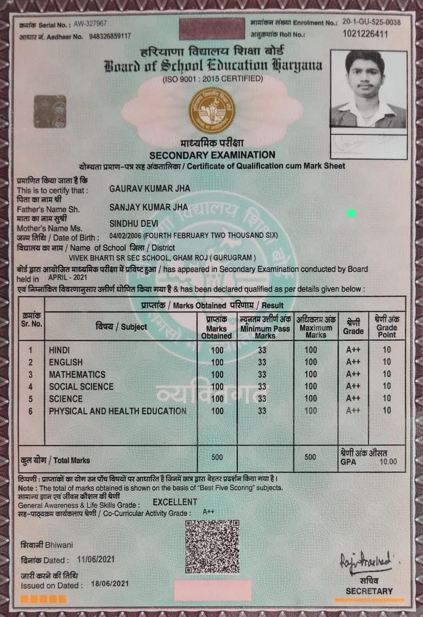 | Exam | Full Marks | Pass Marks | Marks Obtained |