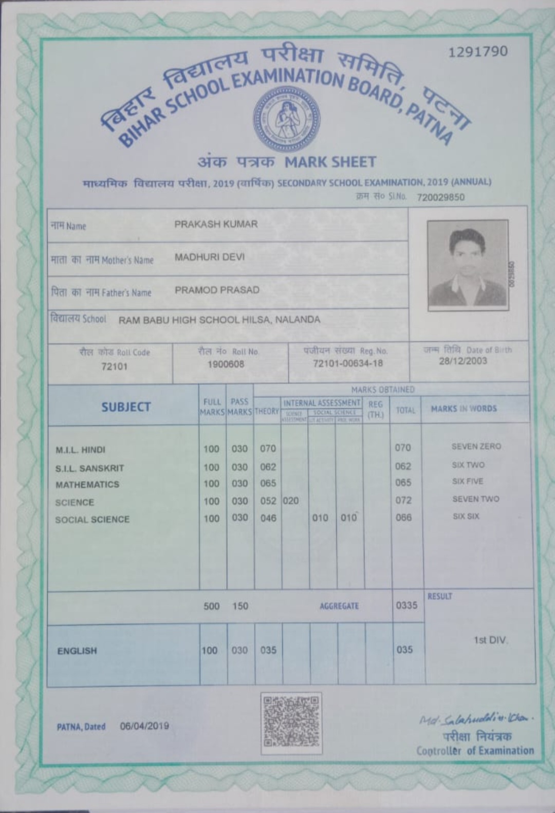 | Exam | Full Marks | Pass Marks | Marks Obtained |