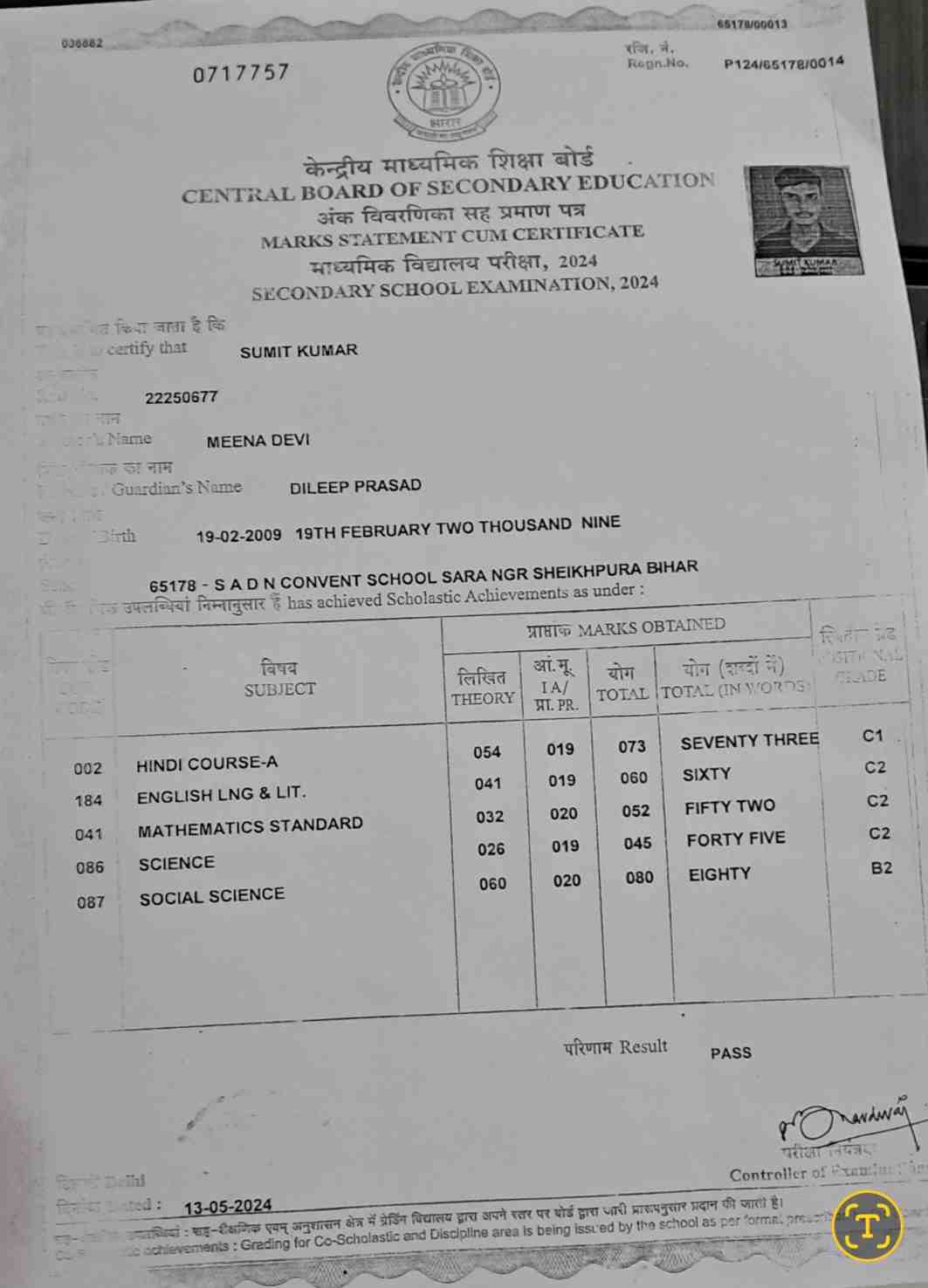 | Exam | Full Marks | Pass Marks | Marks Obtained |