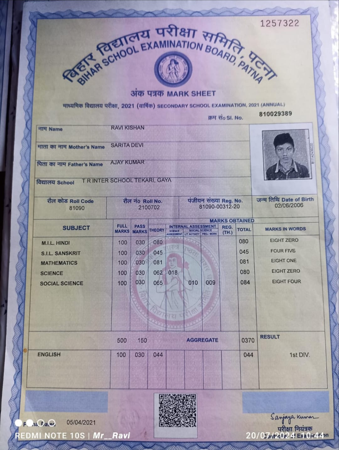 | Exam | Full Marks | Pass Marks | Marks Obtained |
