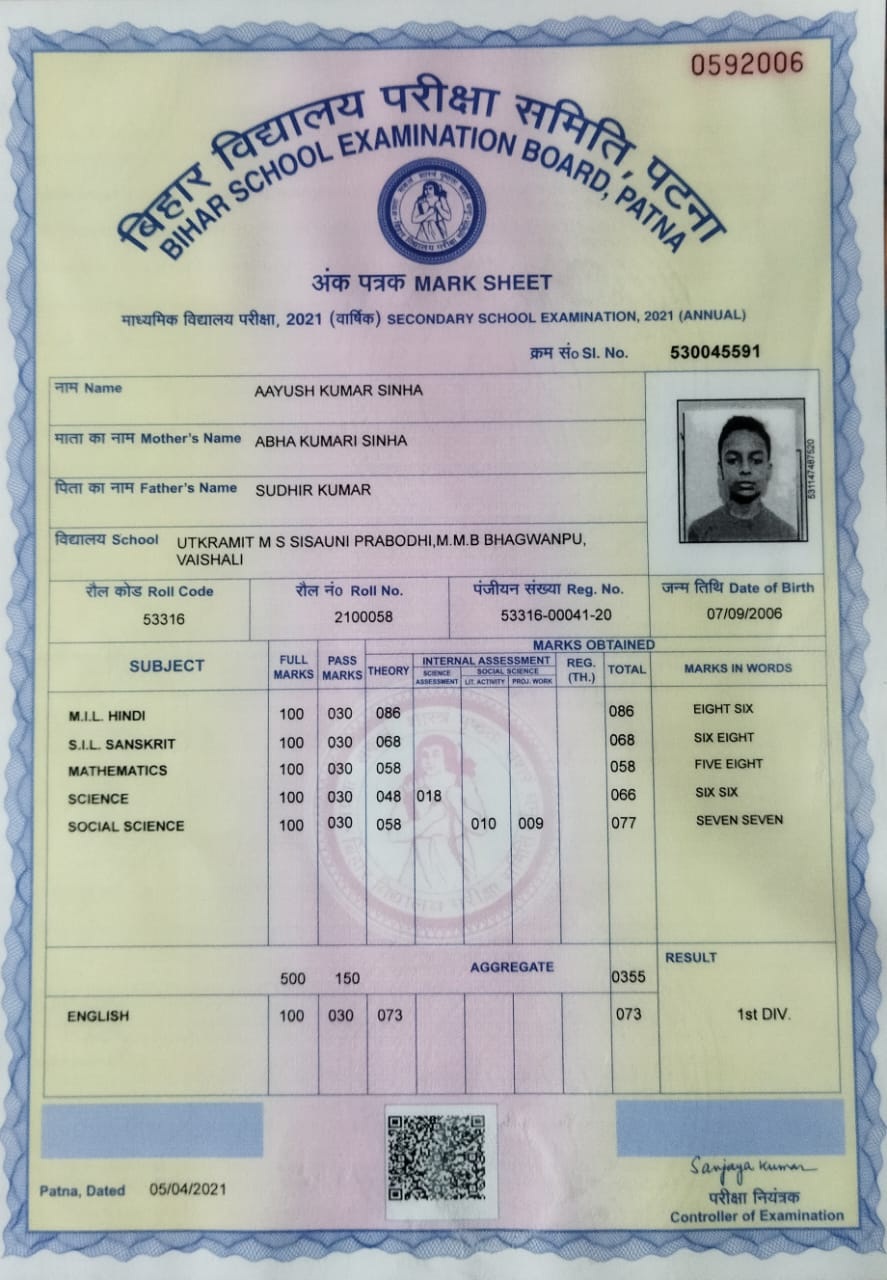 | Exam | Full Marks | Pass Marks | Marks Obtained |
