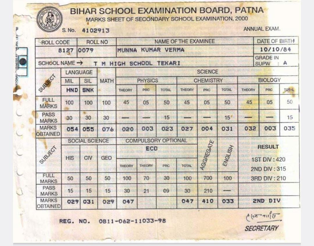 | Exam | Full Marks | Pass Marks | Marks Obtained |