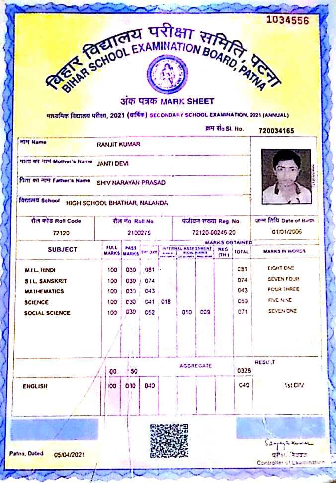 | Exam | Full Marks | Pass Marks | Marks Obtained |