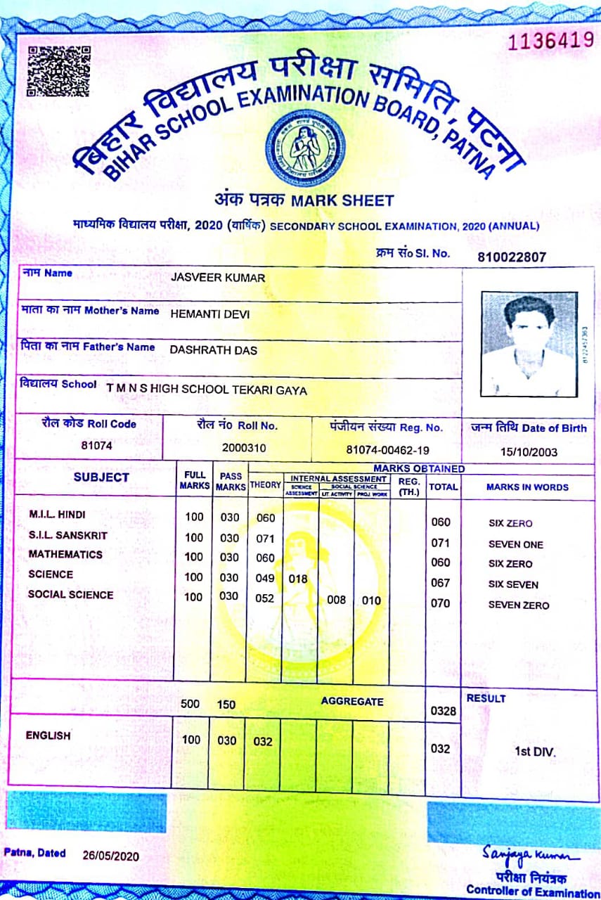 | Exam | Full Marks | Pass Marks | Marks Obtained |