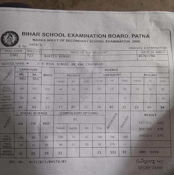 | Exam | Full Marks | Pass Marks | Marks Obtained |