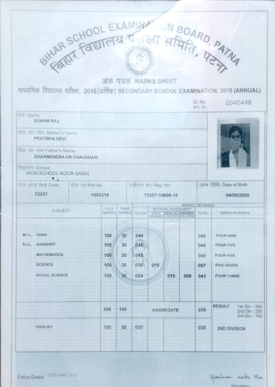 | Exam | Full Marks | Pass Marks | Marks Obtained |
