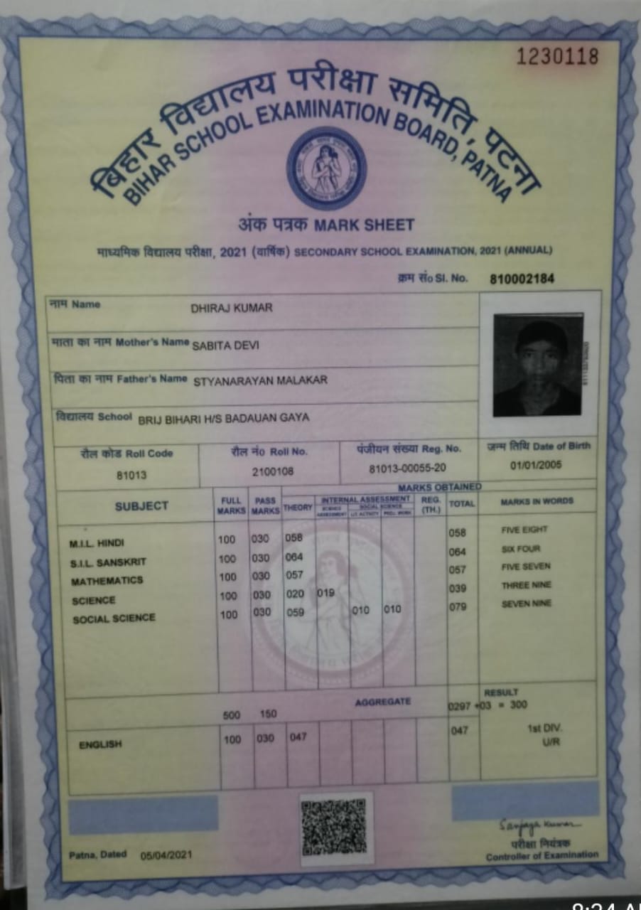 | Exam | Full Marks | Pass Marks | Marks Obtained |